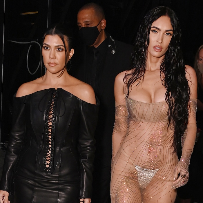 Megan Fox Machine Gun Kelly MTV VMAs 2021. Megan Fox wore a naked dress and blingy thong to the 2021 MTV VMAs.